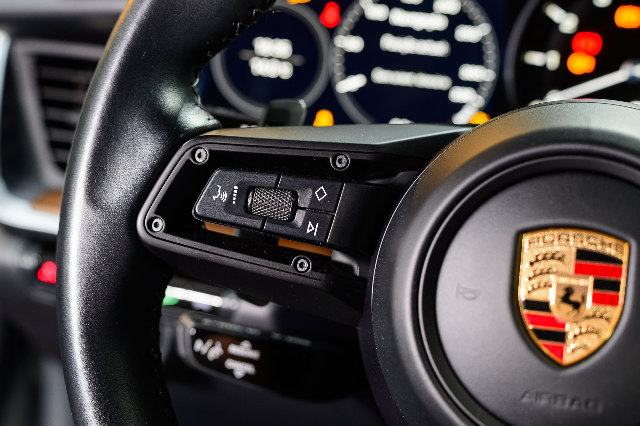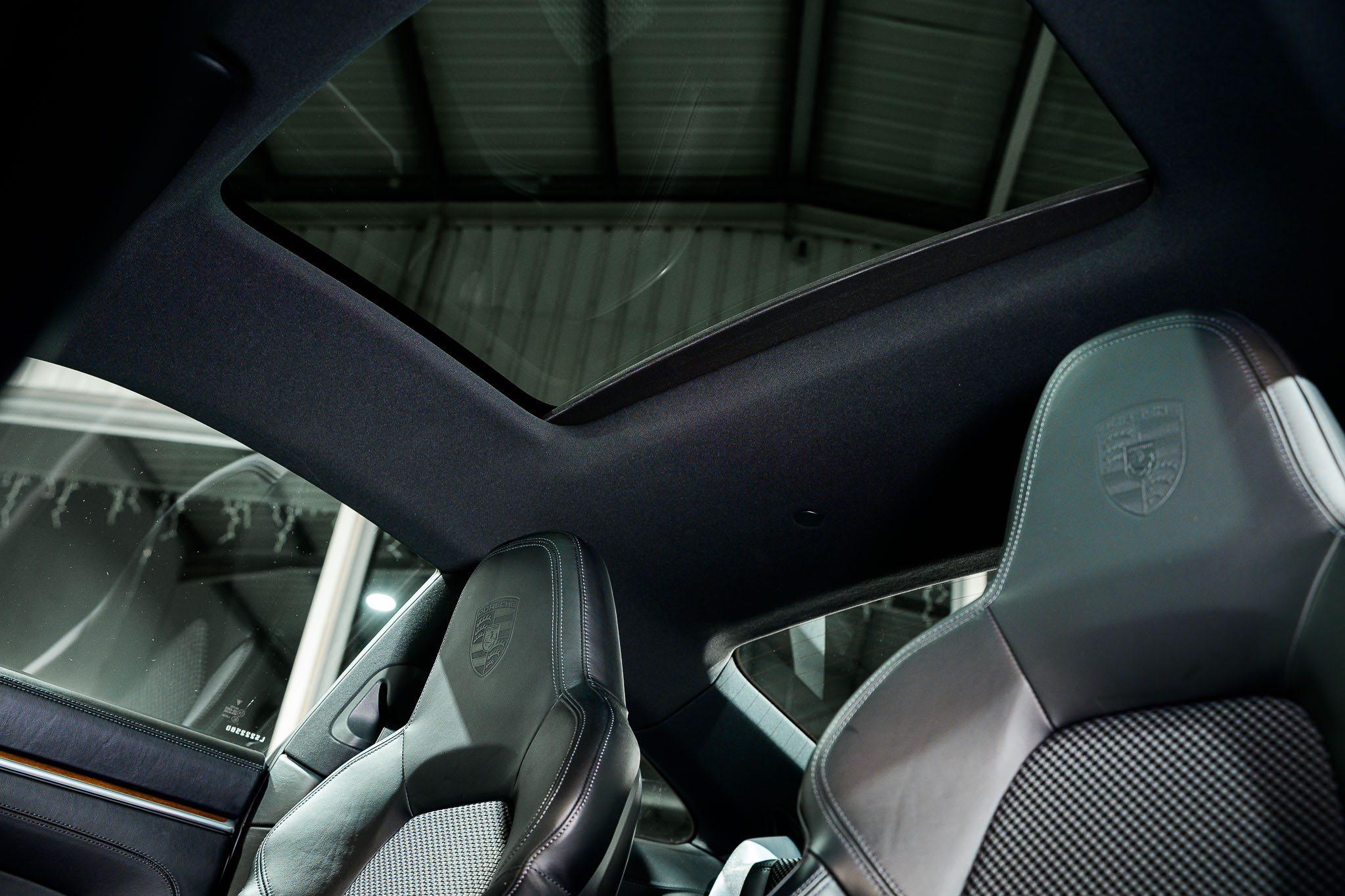 Escudo Porsche gravado nos encostos de cabeça